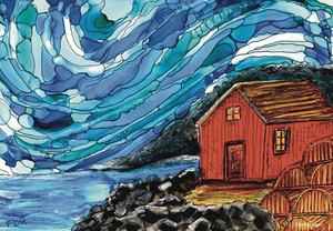 This original painting was done on 20”x13” Yupo paper, using alcohol ink and some black and white posca marker
