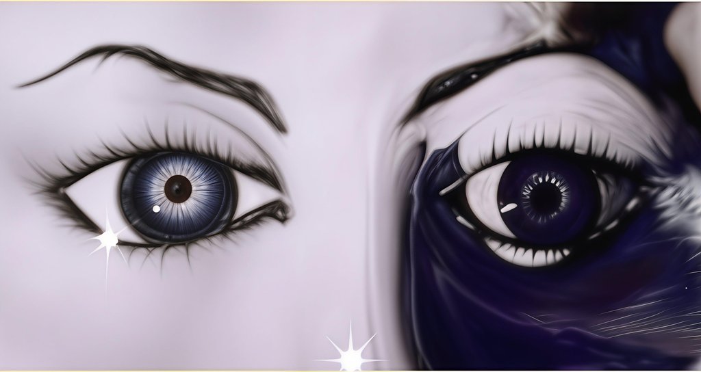 A contrast of strength and vulnerability through a pair of expressive eyes—one bold and intelligent, the other quiet and exposed. This piece captures the complex balance of inner strength and tenderness.