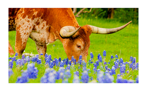 Longhorn Grazing in Bluebonnets