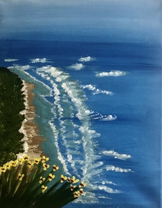 Acrylic painting of the Pacific Ocean off the coast of. California.. Inspiration came from my trip to LA and stay at the beautiful Terranea Resort & Spa.