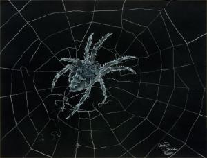 Spider done with white pastel on black paper