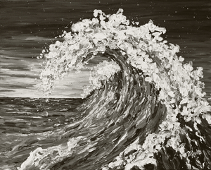Dawn used swirls and splatters of acrylic paint to create the original "Night Wave." This black and white painting looks amazing displayed over a fireplace or sofa.
