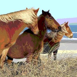 You can see that even in the freezing temperatures of January, (2015) the equines have to "make do" with the dried sea oats on the frontal dune where the temperatures can get down to the single digits. The Corolla Wild Horses have survived on their own for 500 years in this environment...no one feeds them or gives them water. They are a hardy breed of mustang.