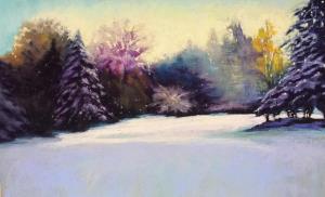 This image reminds me of a quiet walk through the snow... Original pastel painting