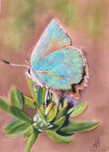 Original pastel measures 6 x 4 inches and is framed under glass in a borderless clip art frame. Available at : donnatheresafineart.com