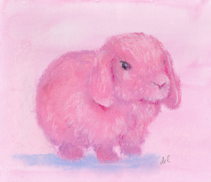 A pretty pink bunny done in pastels.