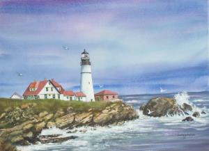 One of the oldest lighthouses in the U.S. A beacon to all. Watercolor painting.