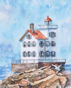 Located on the shores of Lake Erie, west of Cleveland. A watercolor painting.