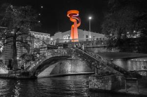 La Antorcha de la Amistad was a work commissioned by a group of Mexican businessmen living in the United States and friends of Mexico, and presented as a gift from the Mexican government to the City of San Antonio in 2002 Painted bright orange it has become an iconic symbol pf San Antonio. I converted this image to B&W and then processed the torch to be the brightest thing in the image.