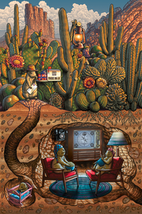 Prairie Dogs invited me into their home to paint their portrait. I had no idea they used 1950's technology. The baby was cute. The uncle was opening the mail which was a birthday present from Granny Dog. All in all it was a very enlightening experience. The dad fell asleep in the middle of the portrait sitting but it all worked out in the end.