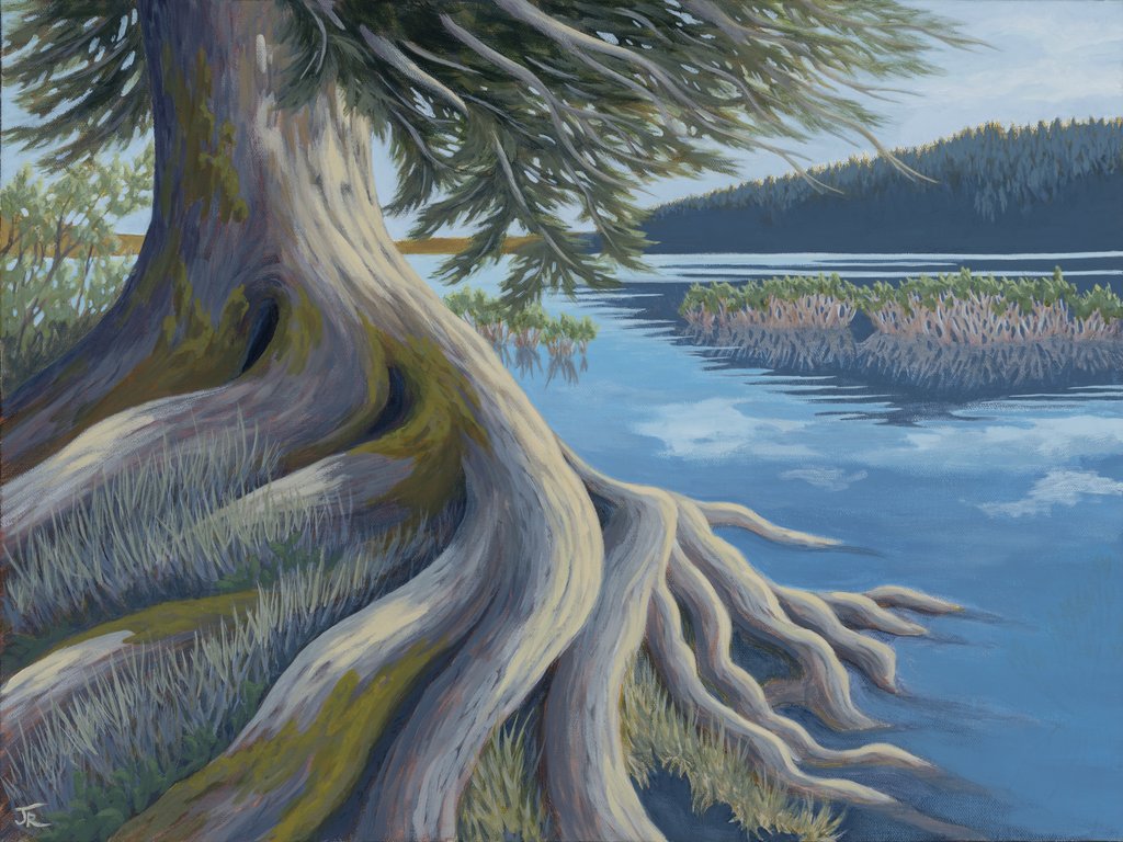 Spruce growing along the edge of Lake Ozette, Olympic National Park, WA