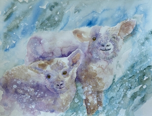 Abstract watercolor of some of my lambs, cozy in their warm wool coats.