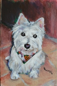 Dog, West Highland WhiteTerrier . Westie lovers will recognize that mischievous look on this adorable West Highland White terrier