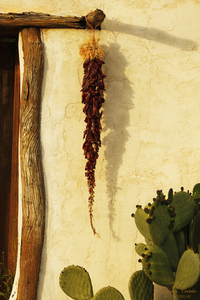 The Ristra (string of Chile) was originated as a method of drying and preserving Chile pods for future use in cooking. Every Fall, after the Chile harvest is over, bright red Ristras are seen everywhere in New Mexico, displayed on homes and roadside stands.
