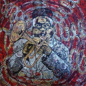 Dizzy A tribute painting by California artist "Leecasso" to the incomparable Dizzy Gillespie, one of the greatest legends of Jazz music. This multi-layered painting will absolutely bring a smile to the viewers face when they see what appears to be sound waves emanating from the trumpet and completely filling this visually compelling work with a really cool vibration. by Leecasso aka Lee McCormick