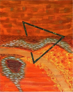 This piece spent a long time in the "what next?" pile. It wasn't done but I didn't know where to take it. I decided to add the triangle for interest and, once I did, it immediately made me think of Pink Floyd's Dark Side of the Moon album cover. I decided to name it along those lines.