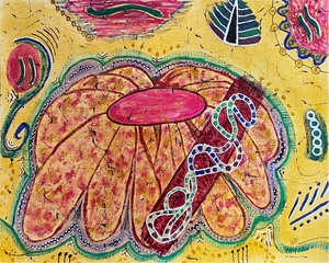 This started out as a simple flower, but I guess the quirky side of me just couldn't let it be ;-) It was a lot of fun adding the creatures and adding detail with gel pen.