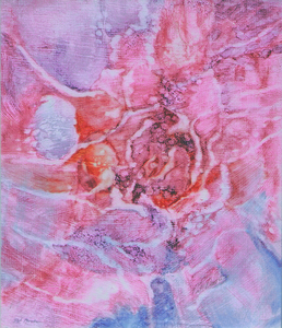 This watercolor on a gessoed surface is a rendering of a visionary universe, a beautiful place to exist.