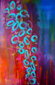 Nature includes all of it's roaring and mischief during a rain storm. In my way of seeing things in bright colors, I break down what might be the abstract version of colors from the sky. It's fluid and imperfect.