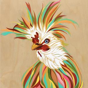 Brightly colored portrait of a Polish Rooster or Polish Chicken by Robin Arthur, aka RobiniArt. Learn more about Colorado artist Robin Arthur at www.robiniart.com. #chickens #rooster #roosters #chicken #polishhen #polishrooster #polishchicken