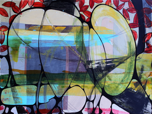Multi Colored, expressionist abstract with a nod to the Mid Century Modern Era style by Colorado artist Robin Arthur, aka RobiniArt