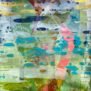 Green, Turquoise, Yellow Abstract by Colorado Artist Robin Arthur, aka RobiniArt. Square shape.