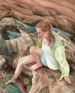 Natural Bridges State Park in Northern California is full of dynamic and pristine tidepools. It truly is a magical place especially through the inquisitive eyes of a child. This painting has a special significance to me as I feel it captures the moment my daughter fell in love with the sea. This 12 year old girl with her toe testing the sensitivity of an anemone has grown into a beautiful woman whose love for the sea has only grown.