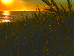 Oregon sea grass creates a reflection of Oregon beach sunset.