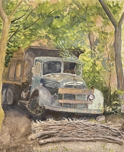 Watercolor on paper 11x14 on archer, abandoned lot in Vinegar Hill, Brooklyn, NY