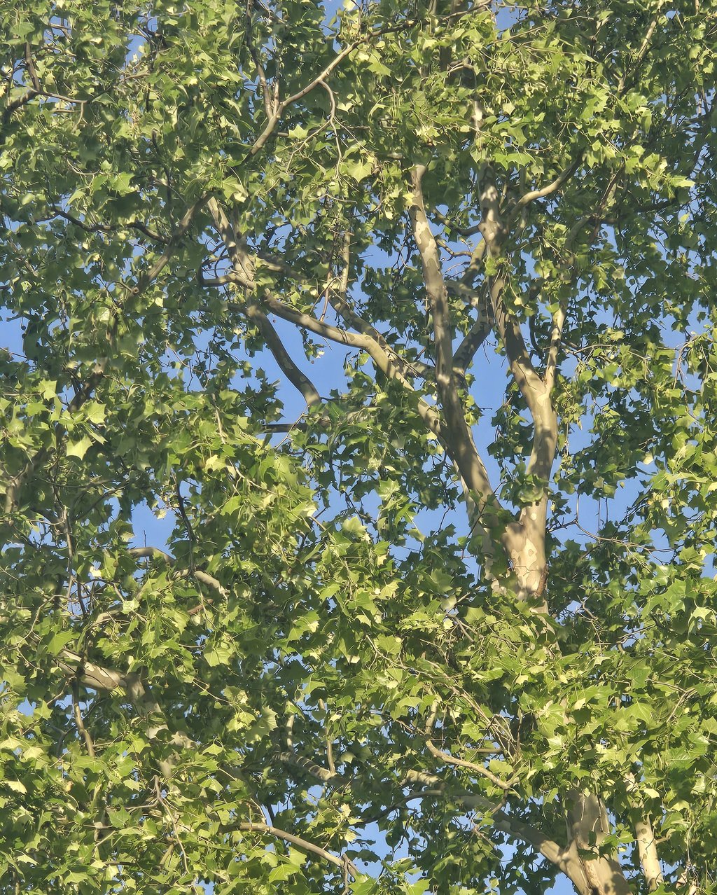 This tree lives in front of my home and I love it dearly. Every season brings new beauty. This particular Spring day brought a sky in a beautiful shade of blue that complemented the green of the leaves and the light, patchy browns in the bark. They came together to create a beautifully serene scene.