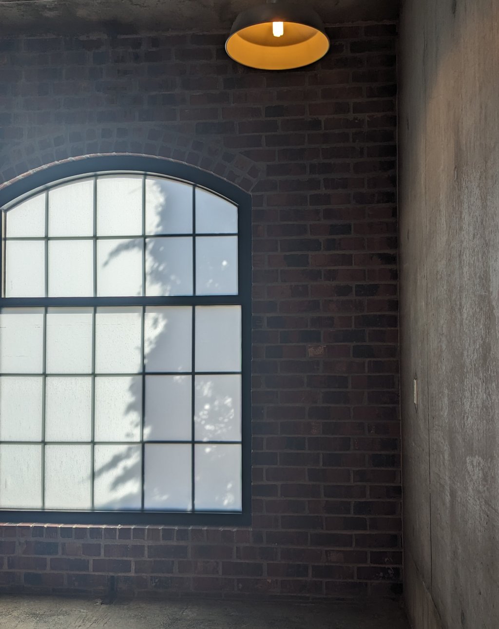 I loved spending time in this peaceful room. The brick walls, concrete floors, and lamps felt so industrial yet welcoming. In the afternoon the sun would cast a shadow on the frosted window of the tree outside softening the feeling of the room.