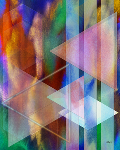 This art was created in 2006. Pastoral Midnight is an abstract art composition. The main design points are triangles over a watercolor background. Pastoral Moment is the sister piece to this art. This art also has a square version. The square version is not just cropped, but the art has been reworked to fit the ratio, The styles this art is offered are as follows: 1 - Prints on fine art archival matte paper attached to museum board (also known as gaterboard). The museum board is black and 3/16 inches thick. 2 - Prints on fine art archival matte paper, with a snow white mat, and elegant black frame. The print also has a glazing (acrylic glass): conservation reflection control. 3 - Prints on artisan archival canvas, thick stretched & mounted with professional taped backing & wire hanger. The canvas edge is black.
