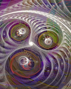 This art was created in 2011. Give Chase is an abstract primarily made up of fractal flames. This art also has a square version. The square version is not just cropped, but the art has been reworked to fit the ratio, The styles this art is offered are as follows: 1 - Prints on fine art archival matte paper attached to museum board (also known as gaterboard). The museum board is black and 3/16 inches thick. 2 - Prints on fine art archival matte paper, with a snow white mat, and elegant black frame. The print also has a glazing (acrylic glass): conservation reflection control. 3 - Prints on artisan archival canvas, thick stretched & mounted with professional taped backing & wire hanger. The canvas edge is black.