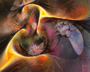 This art was created in 2011. Dark Hollow is an fractal abstract. The bright yellow and gold plays perfect counterpoint to the dark and mysterious purples and violets. This art also has a square version. The square version is not just cropped, but the art has been reworked to fit the ratio, The styles this art is offered are as follows: 1 - Prints on fine art archival matte paper attached to museum board (also known as gaterboard). The museum board is black and 3/16 inches thick. 2 - Prints on fine art archival matte paper, with a snow white mat, and elegant black frame. The print also has a glazing (acrylic glass): conservation reflection control. 3 - Prints on artisan archival canvas, thick stretched & mounted with professional taped backing & wire hanger. The canvas edge is black.