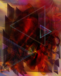 This art was created in 2020. I call this art "Thirty Sixty". I have used 30 and 60 degree angled shapes in my art for many years. This art highlights the triangle and hexagon and how they relate to each other. This art also has a square version. The square version is not just cropped, but the art has been reworked to fit the ratio, The styles this art is offered are as follows: 1 - Prints on fine art archival matte paper attached to museum board (also known as gaterboard). The museum board is black and 3/16 inches thick. 2 - Prints on fine art archival matte paper, with a snow white mat, and elegant black frame. The print also has a glazing (acrylic glass): conservation reflection control. 3 - Prints on artisan archival canvas, thick stretched & mounted with professional taped backing & wire hanger. The canvas edge is black.