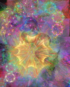 This art was created in 2009. The forth of July, a warm night sky and Flowers bursting in a floral extravaganza! This art also has a square version. The square version is not just cropped, but the art has been reworked to fit the ratio, The styles this art is offered are as follows: 1 - Prints on fine art archival matte paper attached to museum board (also known as gaterboard). The museum board is black and 3/16 inches thick. 2 - Prints on fine art archival matte paper, with a snow white mat, and elegant black frame. The print also has a glazing (acrylic glass): conservation reflection control. 3 - Prints on artisan archival canvas, thick stretched & mounted with professional taped backing & wire hanger. The canvas edge is black.