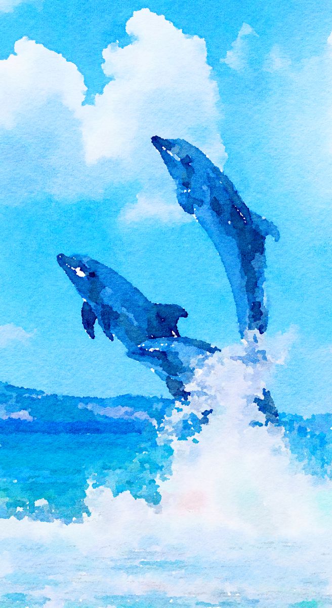The water below churns with the dolphins ‘ playful energy, creating ripples that shimmer as they break the surface. The scene feels full of life and freedom, the dolphins’ joyful acrobatics embodying the carefree spirit of the sea.