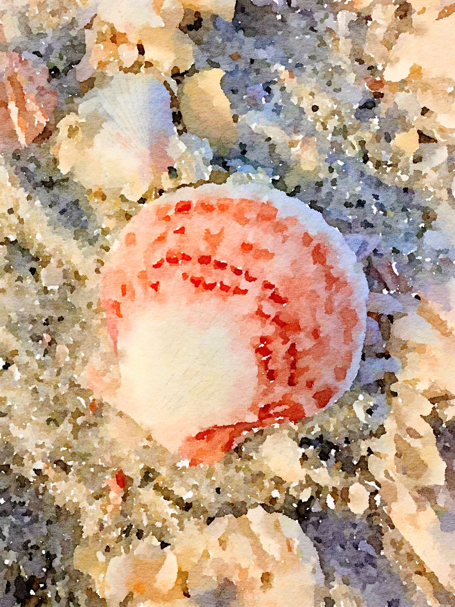 A collection of shells scattered across the sand , each one unique in shape and color. The sand around them untouched, creating a peaceful, natural arrangement.