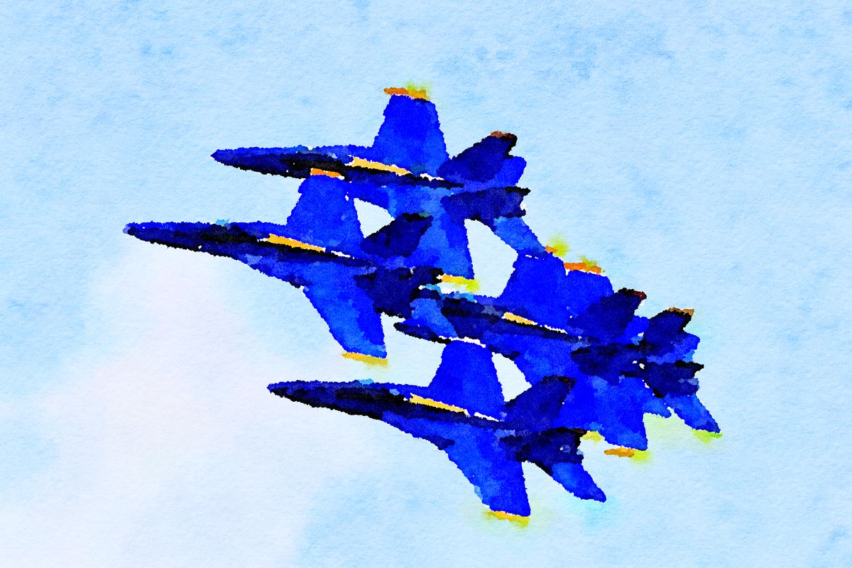 A picture of the Blue Angels flying in Pensacola is a breathtaking display of precision and speed. The jets, painted in their signature navy blue and gold slice through the sky in perfect formation.