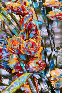 There is never a shortage of material when we look to the garden. We had huge pots of cymbidium orchids when we lived in California and here you find them 'remembered' with a whimsical touch of color.