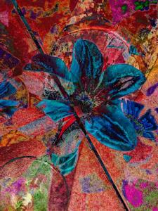 One never knows when images will combine and produce something totally new. Here you can see a clematis bloom that 'somehow' managed to find its way into the cabinet with wine glasses.... It's fun when that happens!
