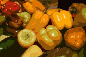 A farmer's market is a rich source for great photographs, and in our case an endless supply of material for art. Here peppers spilling across a table come to life again & again. This piece looks great as a stretched canvas.