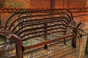 As Durham, NC began to build itself back after Big Tobacco left, they found they had warehouses full of raw materials--like these pipes. You'll now find these transformed into benches, railings, sculpture...there's almost always something popping up to entertain you on a walk through downtown, Brightleaf Square or Central Park. 'Bright leaf' refers to the process of warming tobacco leaves while they cure, leaving them brightly colored. It is reputed to have been accidentally discovered as a results of a fire in one of the curing barns but it led to these beautiful tobacco warehouses where heat could be uniformly applied.