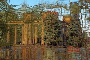 The SF Palace of Fine Arts is joined here with a map of the Marina District and the approach to the Golden Gate bridge.