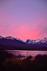 A stunning sky, snow-capped mountains, and calm lake announce a new day is beginning. How can it not be a great day with a start like this?