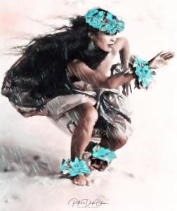 A Hawaiian dancer performing a Mele hula (ancient chants with dance) in ancient traditional attire