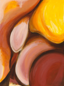 Warm colors in bold strokes to wake up and get moving. Any day is a good day to share these sunshine vibes. Warm earth tones of yellow, gold, burnt sienna, red oxide, and brown painted in Golden Acrylic. Bold shapes and paint strokes. Large scale.