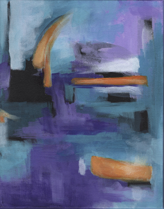 Shades of orange, purple, black, turquoise, sky blue/aqua