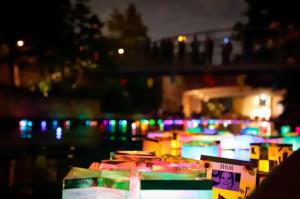 At night by the river with the wishing lanterns carrying the wishes and love floating by to our loved once that are now departed to wherever they may be. We still carry them in our hearts.