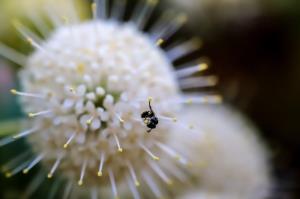 Baby Bee on a Button Brush Flower